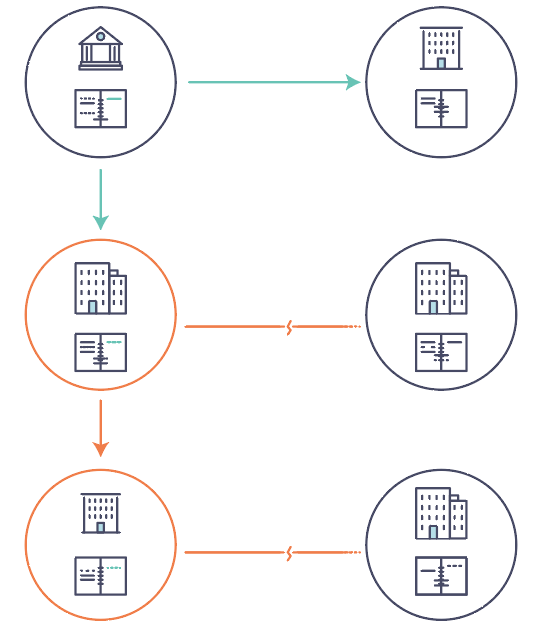 현대의 기술은 이 과정을 석판 및 종이 폴더에서 하드드라이브 및 클라우드 플랫폼으로 가져왔지만 기본 구조는 동일합니다. 네트워크 참가자들의 신원을 관리할 수 있는 통합시스템이 존재하지 않으며, 유가 증권 거래에 대한 출처를 명확하게 하는 데에는 몇 일이 소요됩니다 (전 세계적으로는 수조달러에 달하는 규모). 계약은 직접 서명 및 실행되어야 하며 모든 시스템의 데이터베이스는 고유한 정보를 갖고 있습니다. 그러므로 이는 단일 장애 지점을 나타냅니다.