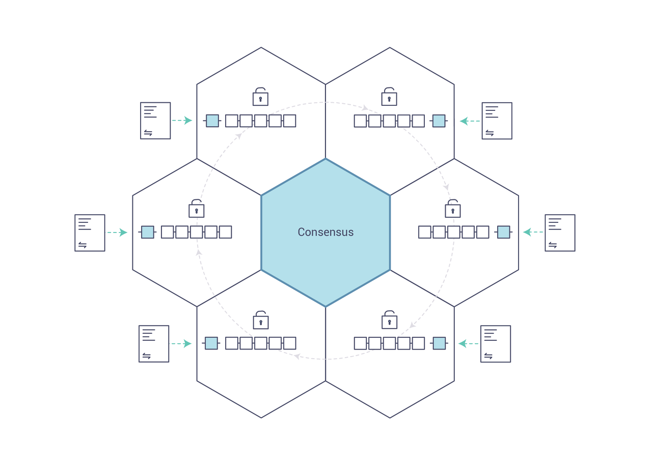 블록체인 원장은 보통 탈중앙화되어 있다고 하는데, 이는 블록체인 네트워크를 유지하는데 협력하는 각각의 다양한 네트워크 참가자들에게 복제되기 때문이다. 우리는 탈중앙화 및 협력이 현실 세계에서 상품 및 서비스를 교환하는 비즈니스 거래를 반영한 강력한 속성임을 알 수 있다.